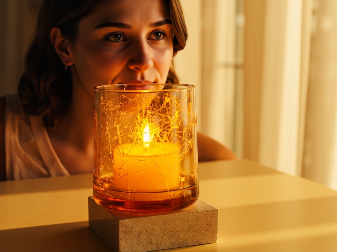 Amber Textured Glass Candle Jar with Lid – Lavender Scented Soy Wax Candle for Home Décor, Gifting & Aromatherapy